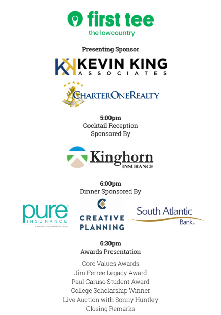 Contact Pat Zuk, Executive Director of First Tee – The Lowcountry, to learn more about event sponsorships, reserved tables, auction donations, or volunteer opportunities.